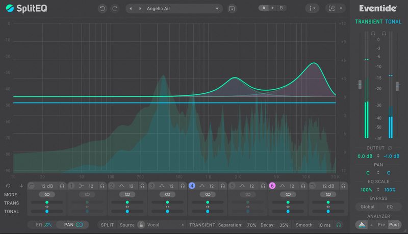 - EQ Transient and Tonal parts of a sound separately using Eventide’s patented Structural Split™ technology.