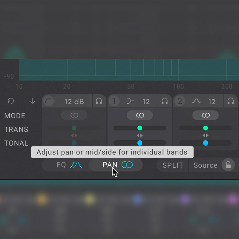 - Enhance the stereo-field with continuous Transient and Tonal panning controls (L/R and Mid/Side modes).