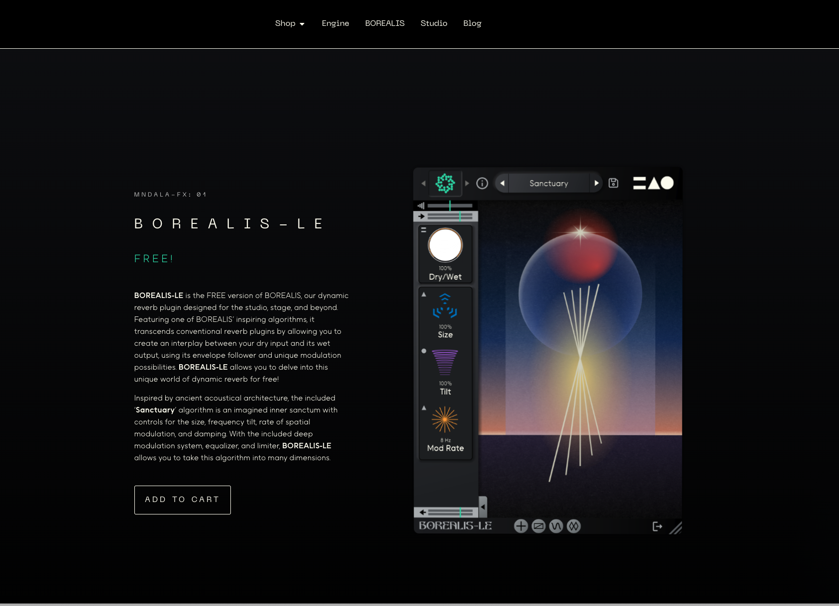The included ‘Sanctuary’ algorithm is an imagined inner sanctum with controls for the size, frequency tilt, rate of spatial modulation, and damping. With the included deep modulation system, equalizer, and limiter, BOREALIS-LE allows you to take this algorithm into many dimensions.