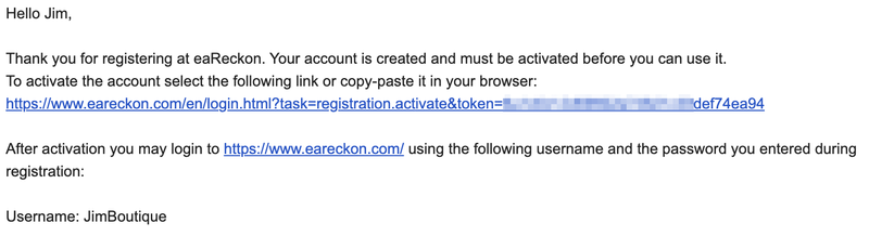 2. Navigate to your email inbox > Click the activation link to activate your eaReckon account > Log in.