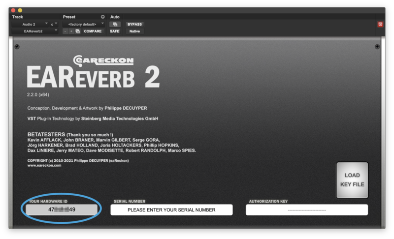 10. Launch your DAW > Insert EAReverb 2 on a new track > Locate your Hardware ID.