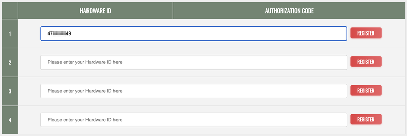 11. Navigate back to the eaReckon website and your account page > Enter your Hardware ID > Click 'Register'.