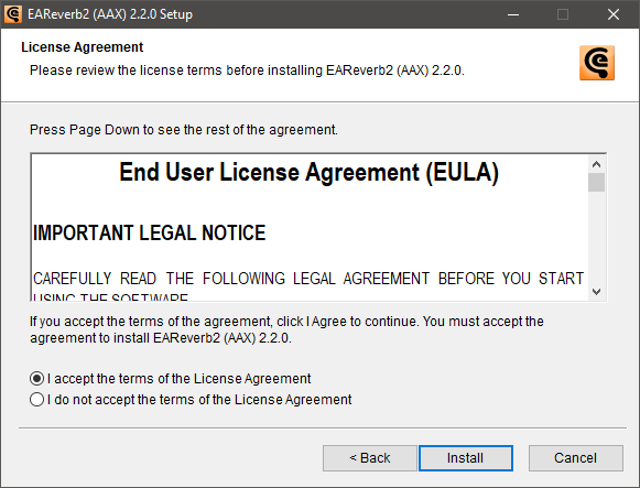 EAReverb 2 is installed, activated and ready to use.