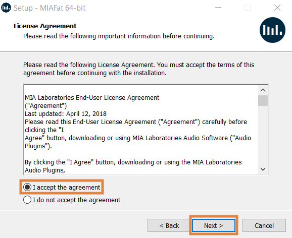 3. Read through the license agreement > click 'I accept the agreement' > click 'Next'.