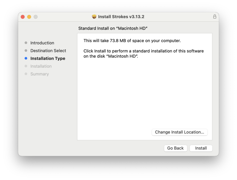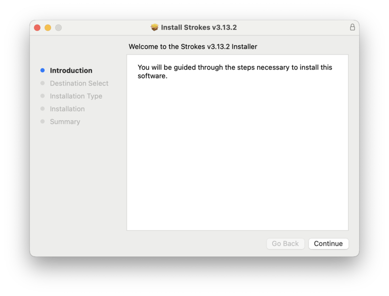 2. Unzip the 'Strokes v3.13.2 Installer.pkg.zip' file, and launch the .pkg file.
