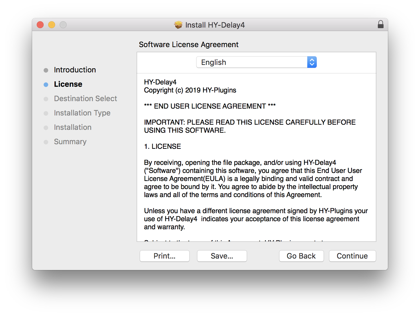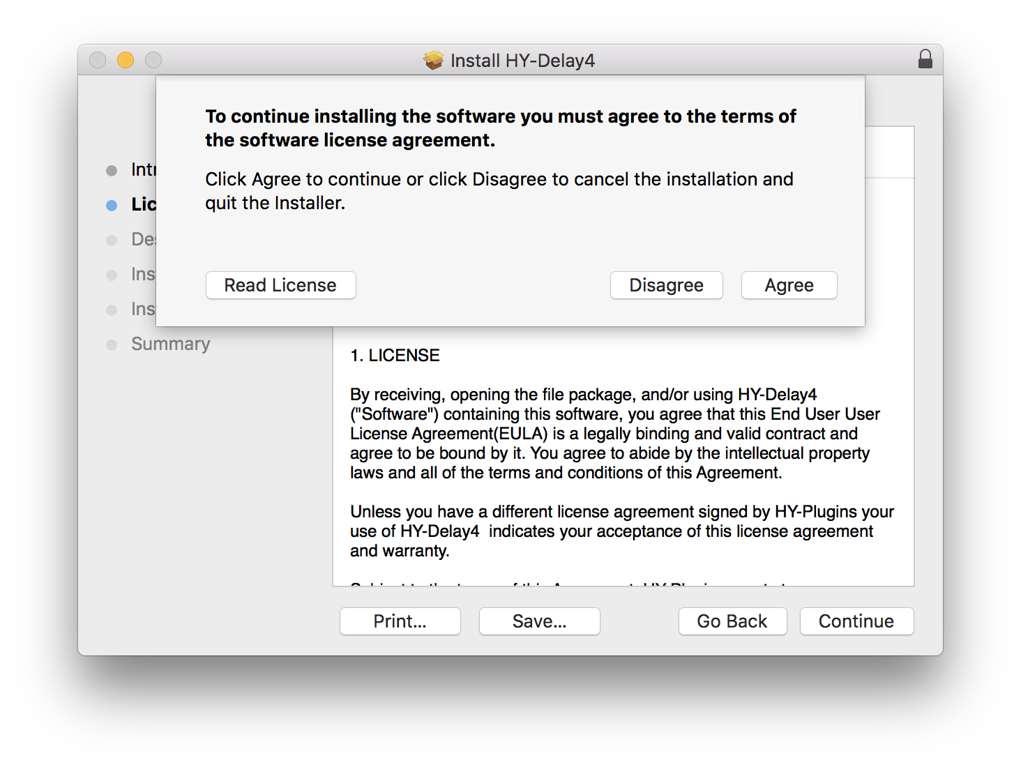 6. Select the disk you want to install HY-Delay4 on, then click 'Continue'.