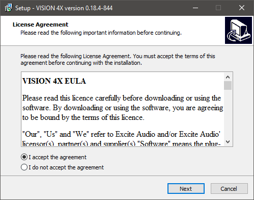 VISION 4X is now installed and ready to use.