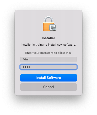 6. Enter your system password > Click 'Install Software'.