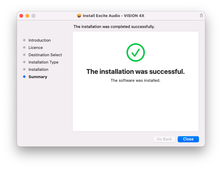 10. This message indicates that VISION 4X is successfully activated > Close your DAW.