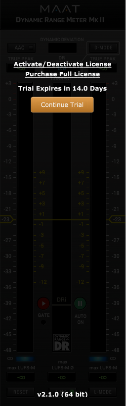 1. Open MAAT DRMeter MKII as a standalone or inside of your DAW. > Click 'Activate/Deactivate License'.