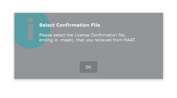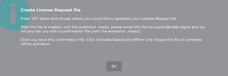 5. Click 'OK' and email the License Request File to support@maat.digital
