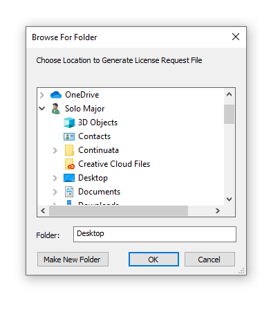 4. Choose a location for the License Request File to be saved > Click 'OK'.