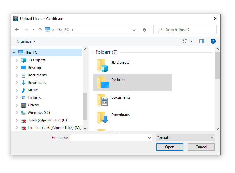 4. Find the .maatc confirmation file sent from MAAT > Click 'Open'.