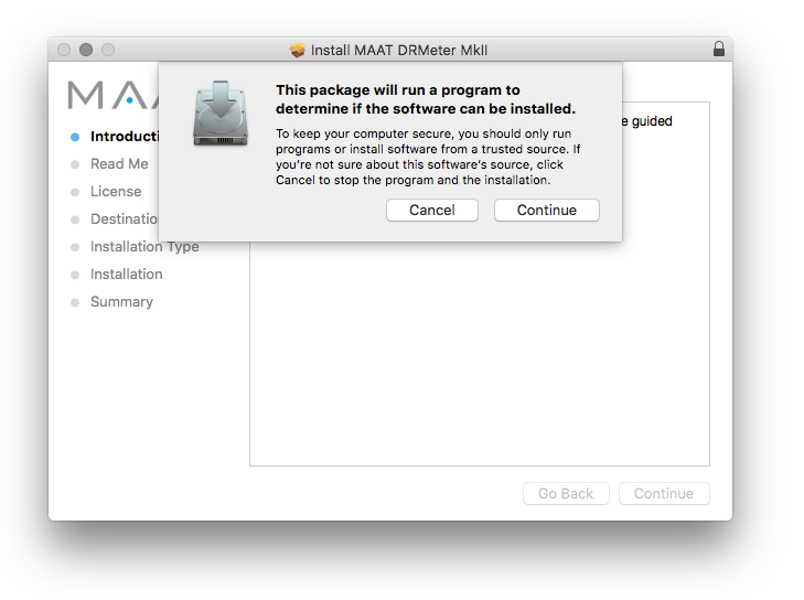 2. Double-click the .dmg installer file to begin the installation process > Click 'Continue'.