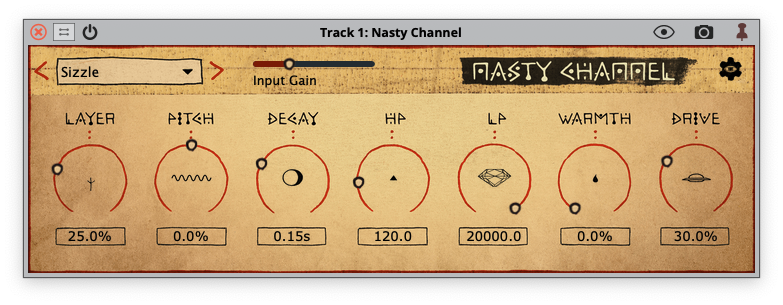 Nasty Channel is a channel strip that lets you easily add grit, saturation, and distortion to your tracks. Dial in a noise layer to add crunch, grit, or shimmer to your bass, drum, and synth tracks. It serves as both a helpful mixing utility and a powerful creative effect. Add some disturbing girth or subtle thizz to individual tracks, buses, or the master channel. You can get as nasty as you want with this thing.