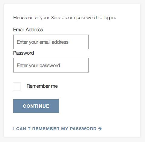 1. Visit https://serato.com/login and enter an Email Address and Password.