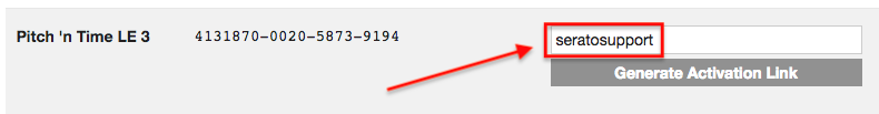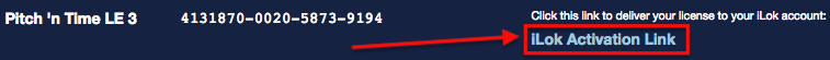 3. Next to your Pitch 'n Time product, you'll now see a field and a 'Generate Activation Link' button. Enter your iLok user ID here, and click the button to confirm.