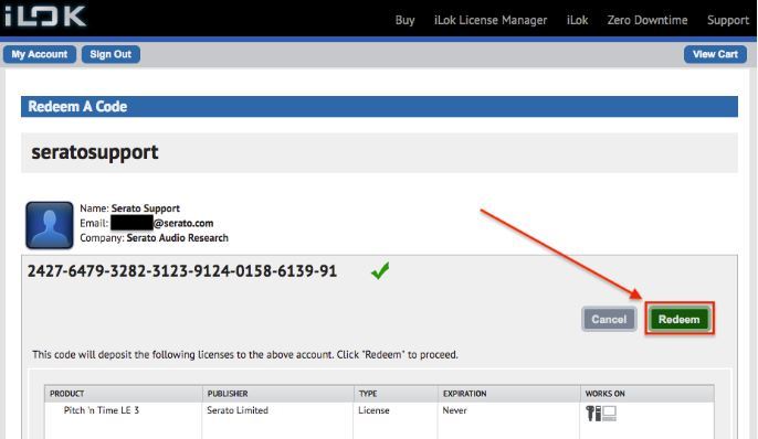 6. Carefully check your iLok user ID details, and then choose 'Redeem' as per the following image.