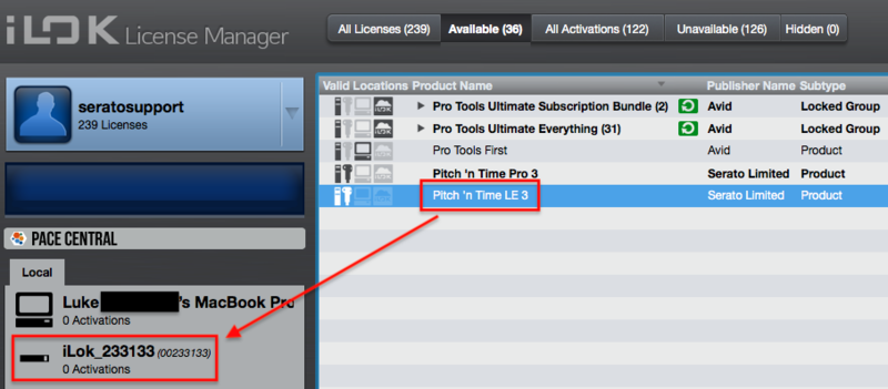 At this point you can click the Available licenses tab, then click and drag your Pitch 'n Time product onto the iLok in the left-hand panel of iLok license manager.