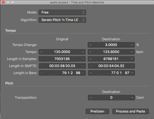 Pitch 'n Time Pro offers time compression and expansion from a ratio of 1/8 speed through to 8 x speed independent of pitch, and pitch shifting of up to 36 semitones independent of tempo.