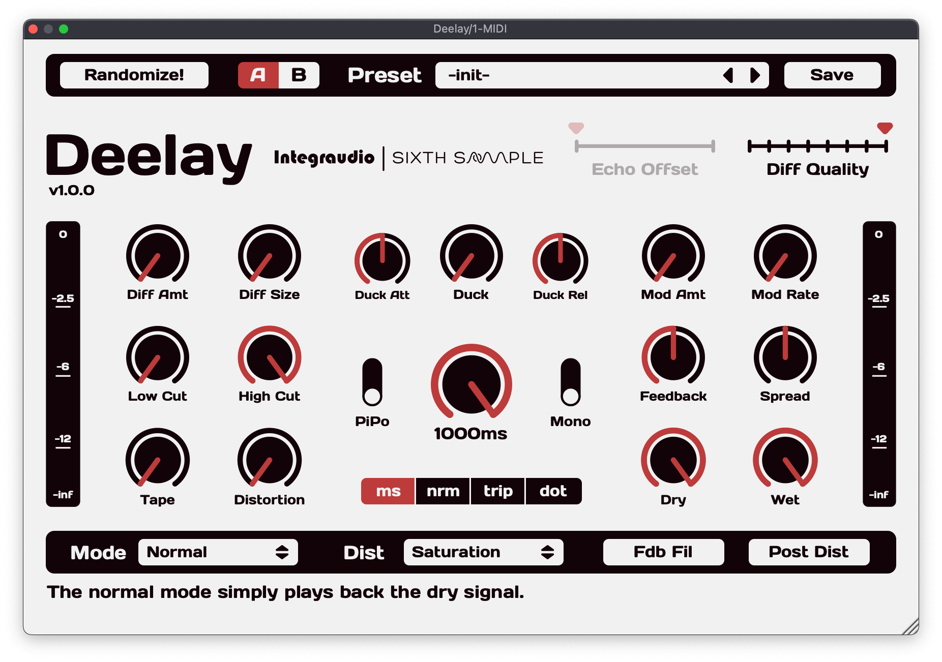 • Wow: The Wow switch introduces a subtle modulation effect, mimicking the wow and flutter typically associated with analog tape machines.