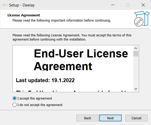 2. Read the License Agreement > Select 'I accept the agreement' > Click 'Next'.