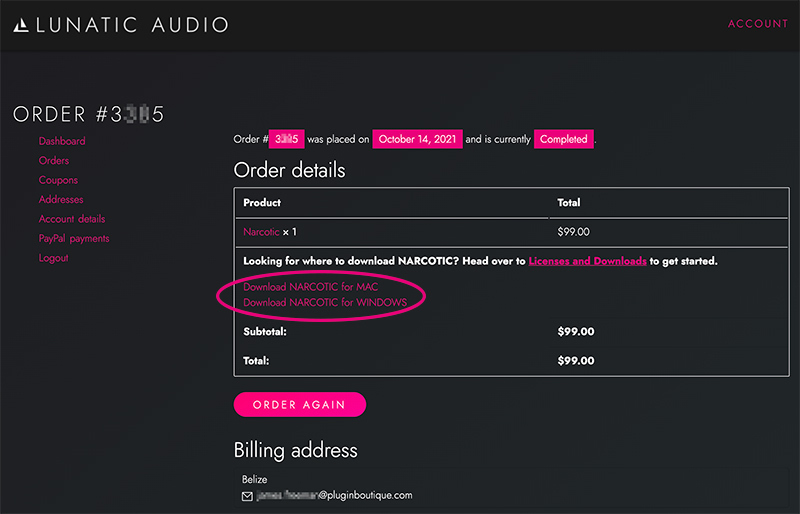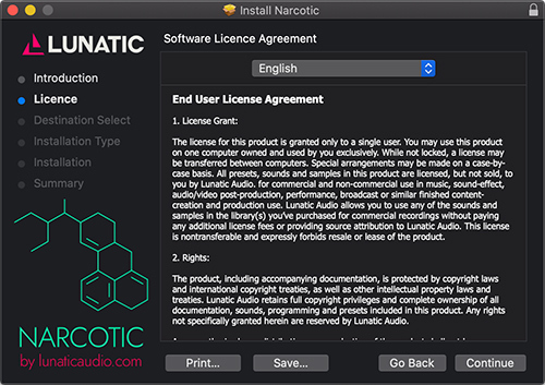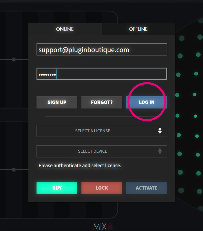 10. Launch your DAW and insert Narcotic on a new track > open the plugin, enter your Lunatic Audio account details > click 'Log In'.