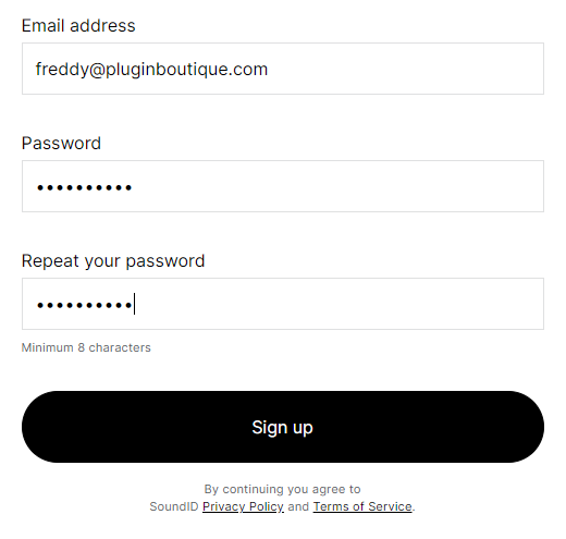 1. Go to https://www.sonarworks.com/account/signup > Enter your email address & password > Click 'Sign up'.