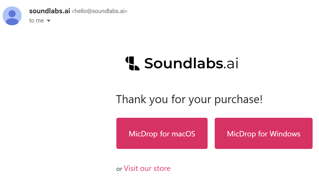 8. Open your email inbox > locate the Order Confirmation email from hello@soundlabs.ai (check your spam if you can't see it) > click the red download button on your chosen Operating System