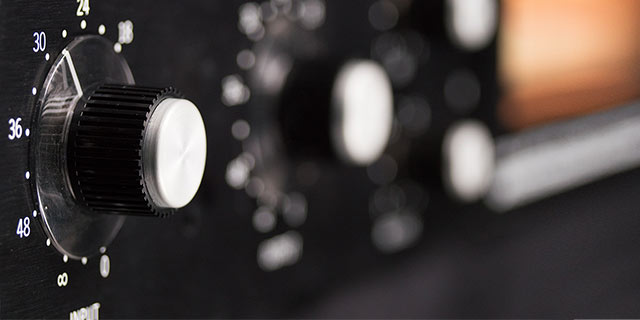 Using an 1176 is a study in simplicity. Input simultaneously sets compression threshold and the level of the signal entering the 1176; Output sets the final signal level. Attack sets the time it takes the 1176 to respond to incoming signal, while Release sets the time it takes the 1176 to return to its initial level. The VU meter displays the amount of gain reduction (GR) or output level (+4/+8).
