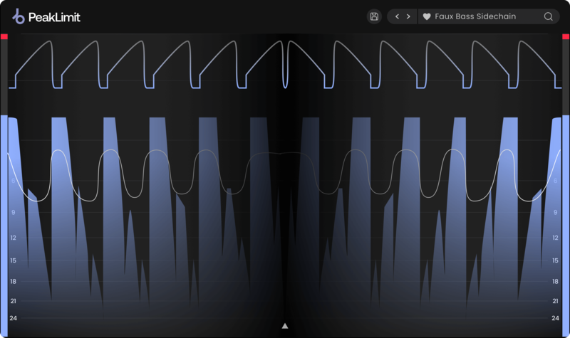 PeakLimit's real-time metering displays the exact gain reduction that is applied to your audio. It also displays the RMS signal level for the left and right channels and the output signal waveform, so you can fully visualise your track's loudness and peak levels.