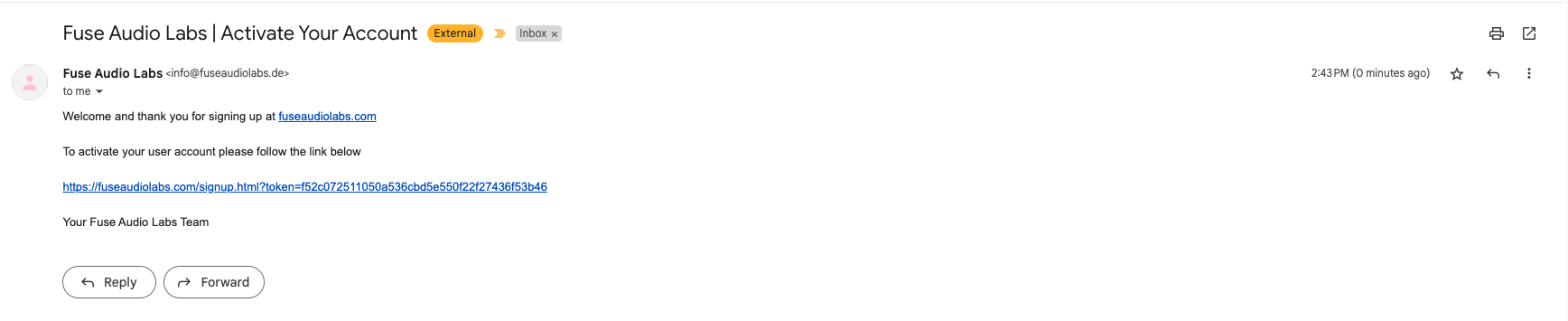 3. Go to your email inbox and locate the email from Fuse Audio Labs > Click the link provided.