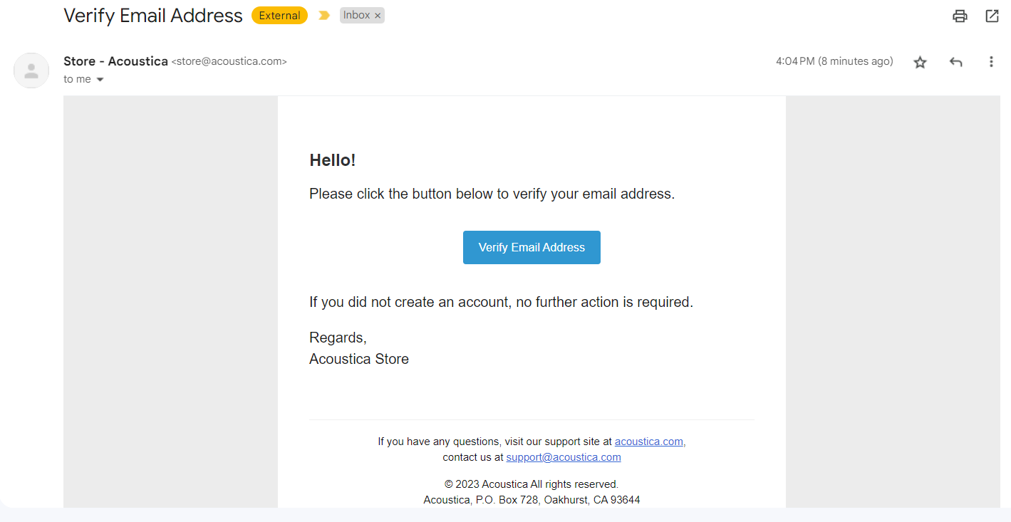 4. Go to your email inbox, locate the verification email from Acoustica > Click 'Verify Emails Address'.
