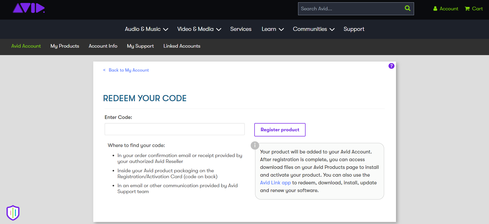 2. Go to https://my.avid.com/products/redemption or click 'Download' in your Plugin Boutique User Account.