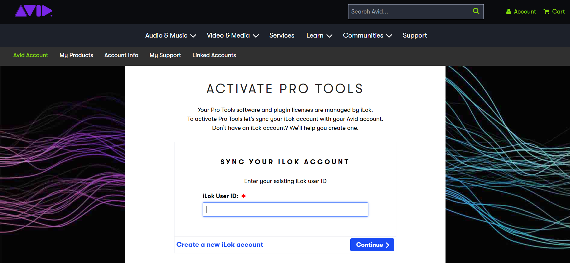 5. Enter your iLok ID and click 'Continue'. This will link your activation to your iLok account automatically.