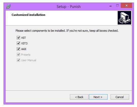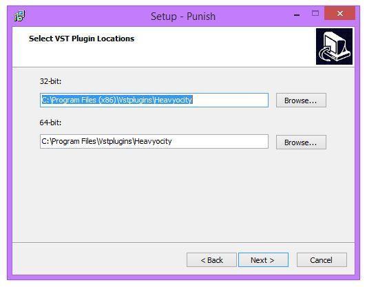 9. Select and confirm the VST folder(s) in which you choose to save the 32/64-bit version(s) of PUNISH in > Click 'Next.'
