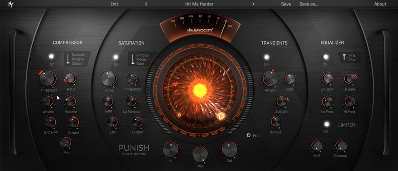 To get you up and running quickly, PUNISH is stocked full of crafted presets, laid out over six categories. This is where the versatility of PUNISH really shines. From Bass to Drums to Mixing/Mastering, PUNISH has a wide range of applications. Whatever it may be, PUNISH has a setting for you -- with over 90 presets arranged by instrument type, and a bonus folder of some HY staff favorites. They’re a great starting point, though an option to save your own presets is also available.emulated