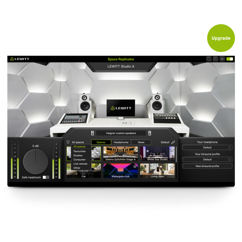 For the new Space Replicator plugin, LEWITT invented a process to capture real acoustic spaces and turn them into virtual acoustic spaces with extremely high resolution. The plugin renders these spaces through your personalized binaural profile for lifelike realism and a natural stereo field.
