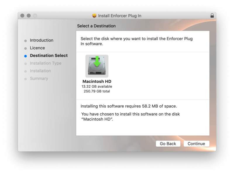 4. Select the disk you wish to install the plugin to and then click 'Continue'.