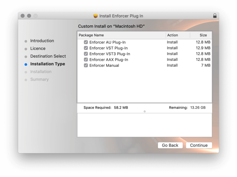 5. Select the plugin formats you wish to install and then click 'Continue'.