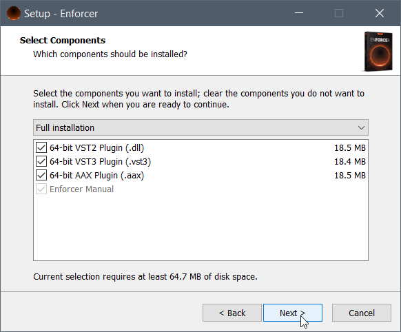 4. Select the plugin formats you wish to install and then click 'Next'.