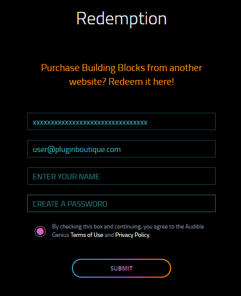 2. Enter the redemption code found in the courses section of your Plugin Boutique User Account > Click 'Submit'.