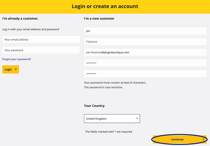 4. Login or Register for a new account by filling in the required fields > Click 'Continue'.