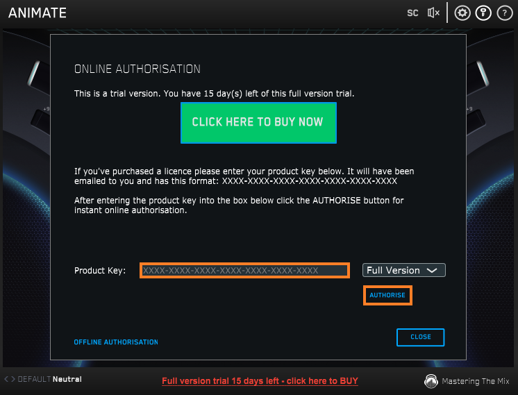 2. Enter the 24-digit serial number, located within your Plugin Boutique User Account > Click 'AUTHORISE'.