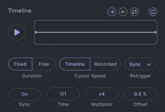 Take control of the modulation and trim and warp your path’s timing freely to generate endless ideas. You might, for example, choose to record a slow, careful movement with your mouse and then speed it up. Or you may carefully design a complex point-by-point and set it to play very slowly, transforming a static loop into a continually evolving pattern.