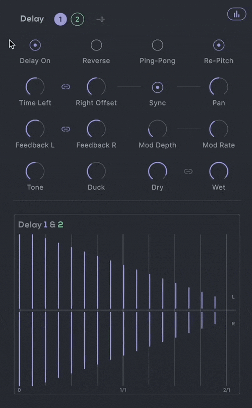 - Amount, Trigger, Rate and Offset controls for adjusting the timing & number of repeats