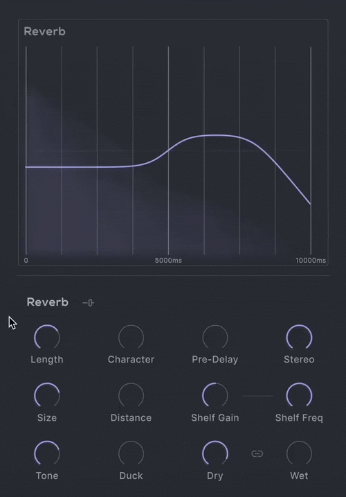 - Visual graph displaying the reverb length, size, pre-delay, shelf & tone