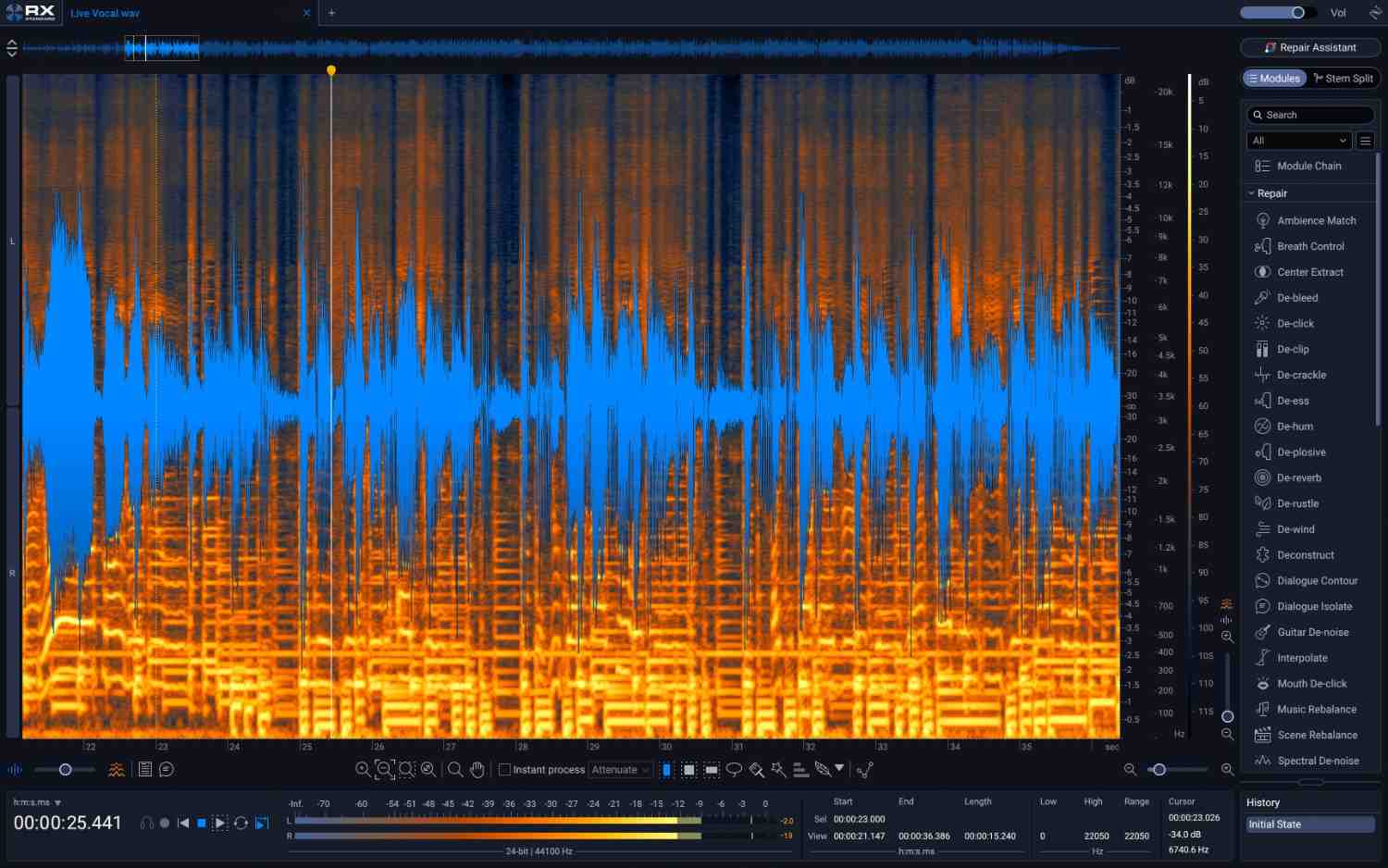 Soften sibilance and dynamically shape tone with intelligently split Sibilance and Tonal channels. Instantly identify sibilant frequencies with Sibilance Learn, and precisely remove distracting mouth sounds, pops, and clicks with De-Click.