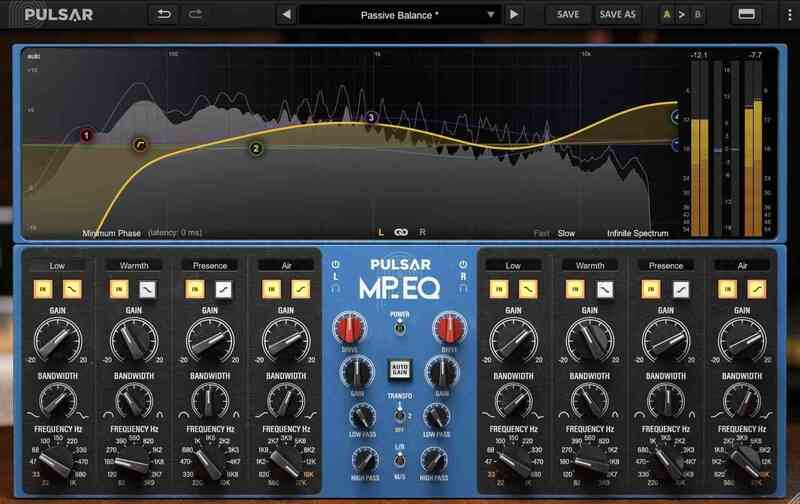 Pulsar MP-EQ is an emulation of a legendary analog EQ found in almost every mastering studio worldwide. Designed as a synthesis of the best passive equalizers of the past 70 years, its fully parallel topology offers a unique and musical frequency response compared to digital EQs with the same settings. Because of this design, the bands naturally interact, producing a more musical overall response.