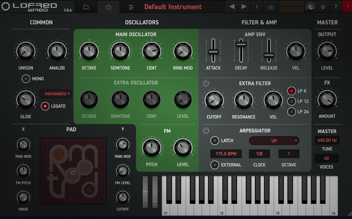 44 years of analog mono synths contained in three massive virtual instruments (Wired, Classic, and Modern). LoFreq Modern contains 11 standout instruments from 1996 to 2018, including Waldorf Pulse 1 and 2, DSTech Original Syn, Eowave Magma and more. Not only do the RetroMod LoFreq plug-ins render the feel of the original instruments thanks to meticulous sampling, they also add a contemporary twist deriving from the secondary multimode resonant filter, while the second oscillator helps beef up the sound and the XY Pad is designed to add your choice of subtle or aggressive color to the original sound. Go big with 16 voices of unison and rapidly generate patters with the integrated arpeggiator – creating pulsing basses, searing leads and thick pads just got freaky!